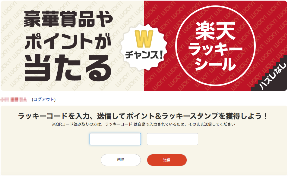 キャンペーンコードを楽天ラッキーシールのサイトに入力し、送信ボタンを押します。