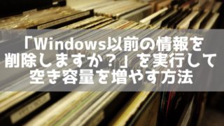 Windows【Windows10】「Windows以前の情報を削除しますか?」を実行して空き容量を増やす方法 Windows10では、Cドライブの空き容量が少なくなると「Windows以前の情報を削除しますか?」というポップアップが表示されます。 今回は、このポップアップによる削除手順と、削除してみた結果についてご紹介いたします。 2018.04.26Windows